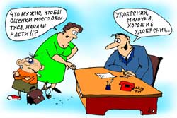 Директор, який персонально відповідає за правильність видачі документів, каже про помилки. Що ж, у свідоцтві Артема Г. вісімнадцять помилок – в оцінках з усіх предметів курсу за дев’ятий клас. (Знаєте анекдот про ніж? Впав, наштрикнувся, і так 18 разів.) Характерно, що назви предметів і оцінки виписані різними почерками. Самі помилки такі приємні – оцінки вищі за реальні. За винятком хіба що праці (“десять” у журналі і “дев’ять” у свідоцтві), але все одно дитину не скривдили. Даєш всім учням у свідоцтвах відповідні помилки!