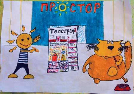 – Вся наша семья читает газету «ТелеграфЪ», из которой мы узнали о конкурсе. На моем рисунке кот Телеграфчик, который любит делать покупки в Просторе, поэтому такой толстый, и Солнышко, которое любит читать газету «ТелеграфЪ». Кстати у меня тоже есть любимая страничка в «Телеграфе». Это анекдоты. Знаете, такие конкурсы нужно проводить. Тут приятно и весело. Я посмотрела, как рисуют другие дети, познакомилась сегодня с Алиной, Егором и Катей.