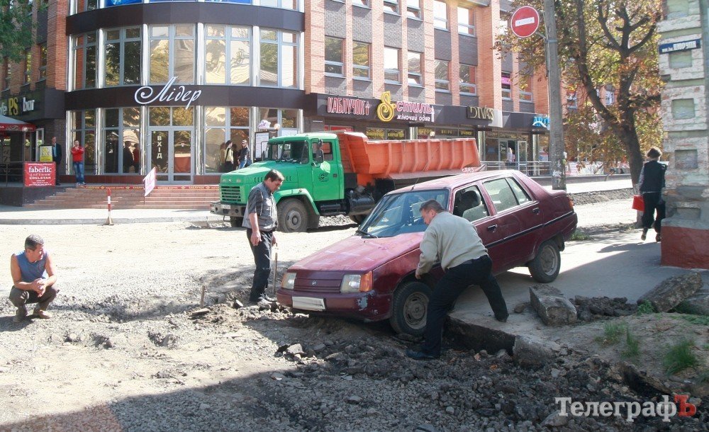 Автомобиль выехал с тротуара со стороны ул. Октябрьской и застрял при съезде на проезжую часть, которая в данный момент там отсутствует…