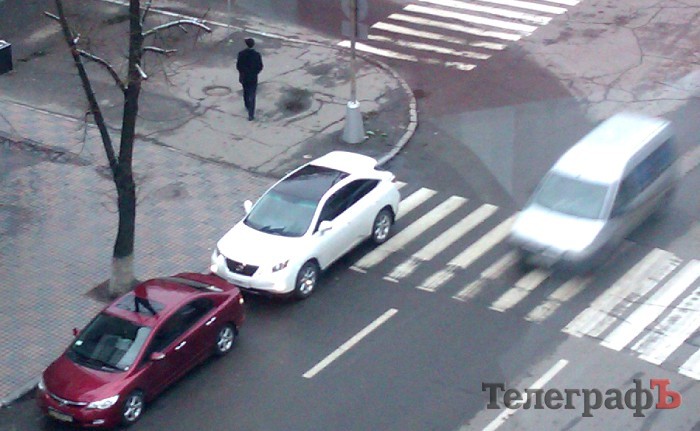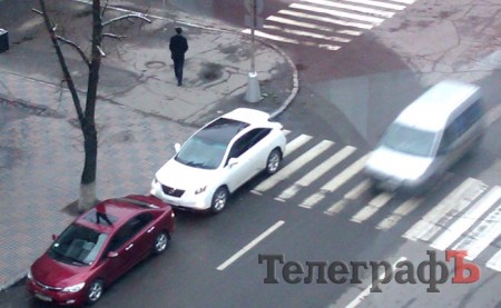 Renault, на котором народный депутат Юрий Бублик приехал в Кременчуг, убедительно поворачивает на дорогу предназначенную для общественного транспорта.