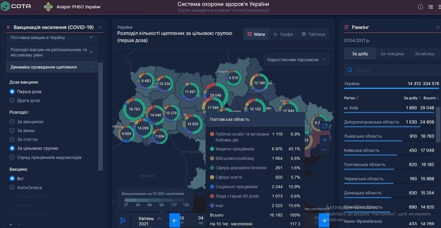 Станом на 7 квітня на Полтавщині зроблено 16 182 щеплення, невикористаними лишилось лише 3 118 доз з тих, які надійшли в область наприкінці лютого. Цього тижня медики планують використати всі наявні дози вакцини CoviShield (Oxford/AstraZeneca), тож саме час підвести певні підсумки.