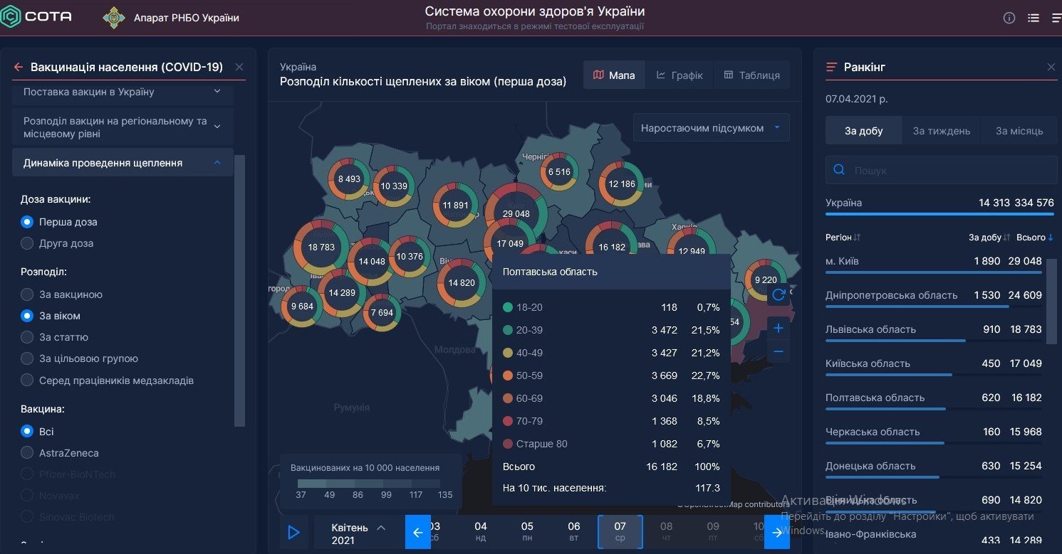За інформацією сайту Системи охорони здоров’я України, найбільше вакцинуються люди до 59 років:
