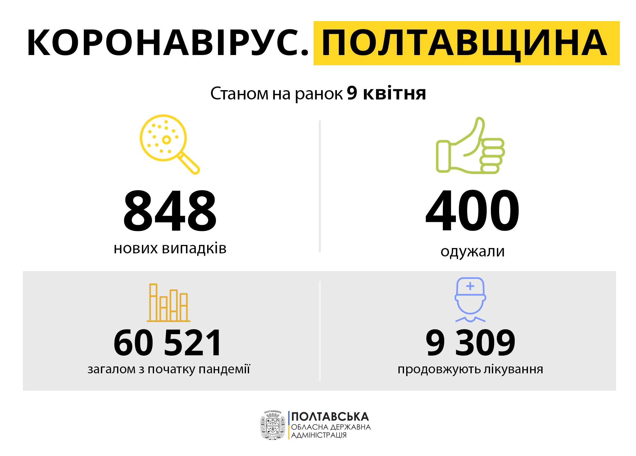 Щодо Полтавщини, то в області коронавірусну хворобу виявили у 164 осіб, всього за час пандемії на COVID-19 захворіло 53638 людей . Одужало 45, а 10776 продовжують лікування, з них 405 – діти. Протягом доби померло 7 мешканців області (6 у Полтаві та 1 у Лохвицькому районі).