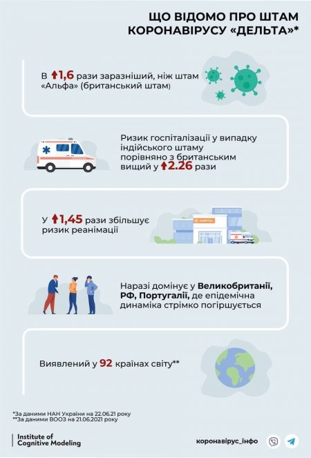 Крім того, НАН України попереджає про ймовірність поширення в країні коронавірусу типу «Дельта». Вперше цей штам зафіксували в Індії. Наразі він циркулює в 92 країнах світу.