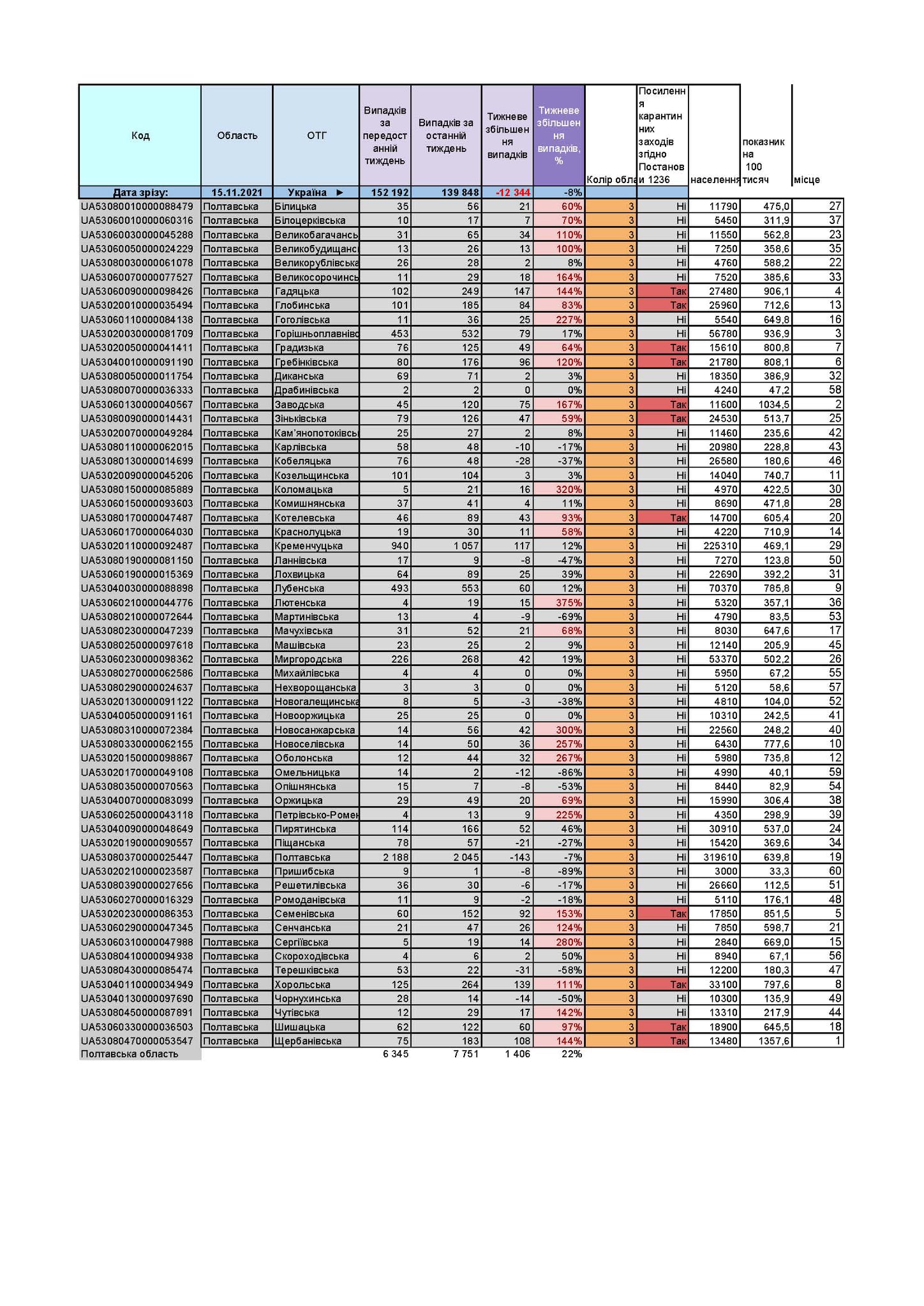 На даний момент вже 18 областей України знаходяться в «червоній» зоні, і Полтавщина може стати наступною.