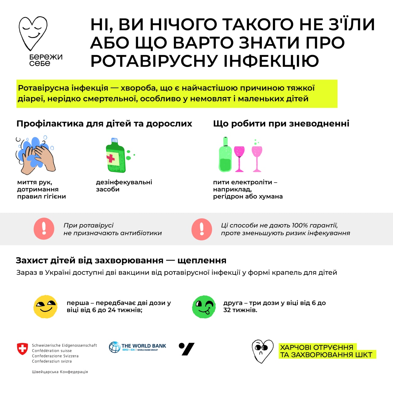 Саме тому немовлятам варто отримати щеплення проти ротавірусної інфекції. Зараз в Україні доступні дві вакцини від ротавірусної інфекції у формі крапель для дітей: