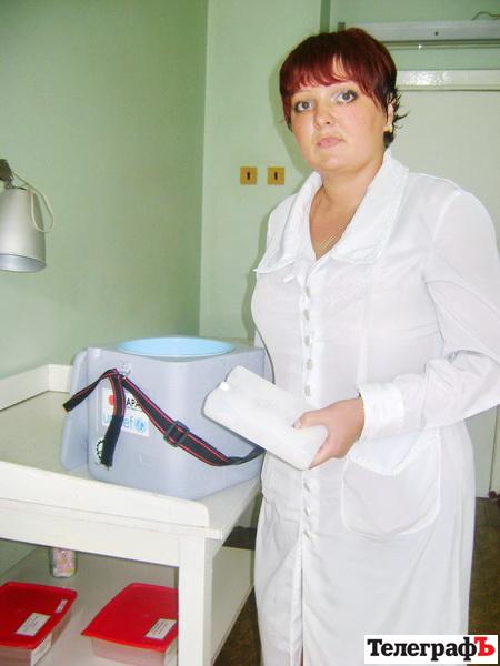 – Нам привозять її у холодильнику. Бажано, щоб і у вас було щось для охолодження. Берете грілку, заморожуєте у ній лід, обгортаєте целофаном, приносите сюди, кладете ліки на грілку, обгортаєте і несете так у поліклініку.