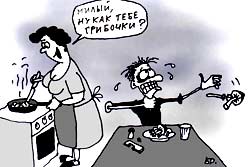 Гриб потребує індивідуального ставлення до себе – відповідального і обережного. Я їх сам збираю, сам мию, чищу. Інколи це триває годин до трьох ночі. А от різати не можу – шкода, йду з кухні, довіривши дружині цю процедуру. Зате страви з них виходять – справжні делікатеси! Коли їх готую, аромат такий, що сусіди в стіну стукають. Наприклад, з язика (назва гриба – прим. ред.) виходить чудова тушкована у духовці ікра з овочами. З говорушок – неперевершені печені пироги. До речі, ці гриби плутають з лисичками, але я жодного разу лисичок в місцевих лісах не зустрічав. А ось із сірого зонтичного гриба (зовні дуже схожого на мухомор) готую страву, яка за смаком нагадує біфштекс. Крихкі шляпки треба обережно знімати з ніжки і так само транспортувати. Дома – добре промити, вмочити в кляр і підсмажити, а коли вичахне – не відрізниш від м’яса. Білі ж можна готувати, як завгодно. Вони смачні у будь-якому вигляді.