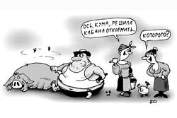 • Перекушуємо на бігу, а розгалуджена мережа бістро і закусочних тільки сприяє цьому. Окрім того, головна причина ожиріння – економічна ситуація в країні. Ми примудряємося виживати на зарплатню, налягаючи на хлібо-булочні вироби, картоплю та кашу.