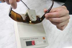 Прилад для вимірювання ультрафіолету ми знайшли у магазині “Оптика-Лорнет”. Вирішили перевірити, якими ж окулярами захищаємось від сонця? Втім, погода була дощова, і в офісі “назбирали” лише дві пари окулярів. Обидві – головного редактора. Окуляри шефа стійко витримали випробування – 100-відсотковий захист від ультрафіолету. Не з лотка ж по 10 гривень за штуку пан редактор їх купував…