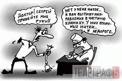 У поліклініках і лікарнях системи Мінздраву немає обладнання. Нішу необхідних обстежень заповнюють приватні клініки. У державних клініках уже направляють туди на лікування. Для лікарів це робота за сумісництвом.