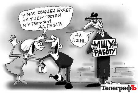 Трохи згодом, коли «градус» розмови знизився, ми почули таку сімейну історію. Хлопець і дівчина (23 та 20 років відповідно) вирішили одружитися. У них велике кохання. Воно не передбачає суворої прози та нудних фінансових розрахунків. Тож закохані діти просто поставили батьків перед фактом – вони одружуються, і родичі мають організувати їм гарнюще весілля – щоб не гірше, ніж у людей! Дівчина (вона скромніша) хоче розкішну сукню. Хлопцю потрібен класний лімузин, щоби круто під’їхати до під’їзду. Ну, і ще різні дрібнички – зал в «Афінах», те-се. А весільна подорож має бути до Греції – бо Туреччина, то занадто скромно.