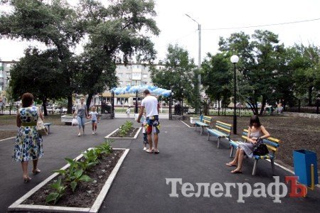 Сегодня, 1 августа, в Кременчуге открыли сквер «Сосновый», реконструкцией которого два года занимался водоканал. Точнее, открыта только половина сквера: вторая все так же обнесена временным забором, там еще ведутся работы.