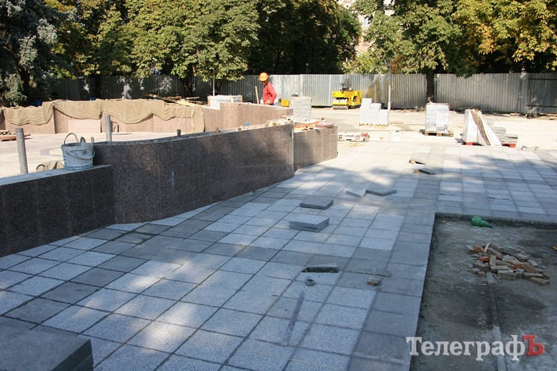 Тротуарную плитку, как и сообщалось раньше, вокруг фонтана ко Дню города полностью выложить не успеют. Тендер на закупку плитки еще не проведен. Фирма «Центр» выложит только часть плитки, закупленной за свой счет.