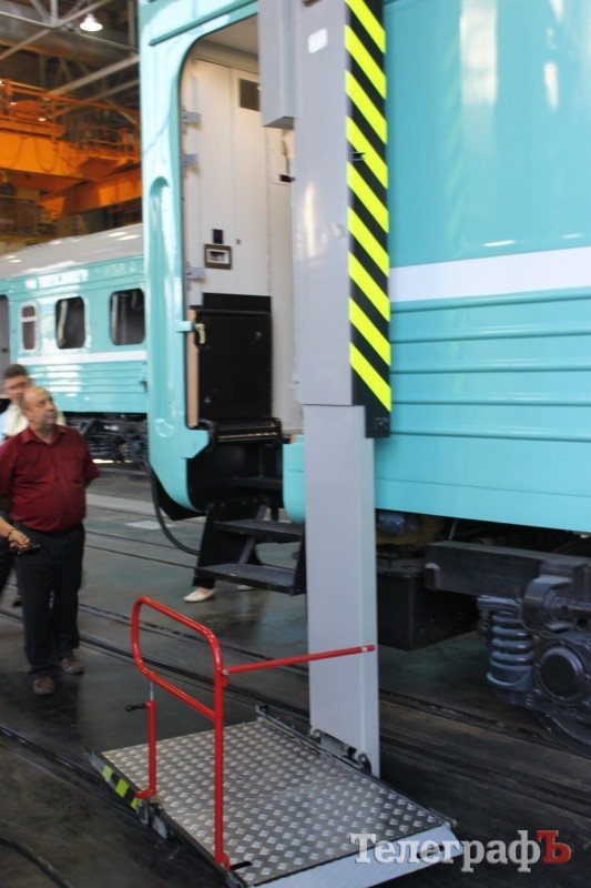Один из вагонов оборудован специальным подъемником для посадки пассажира-инвалида.
