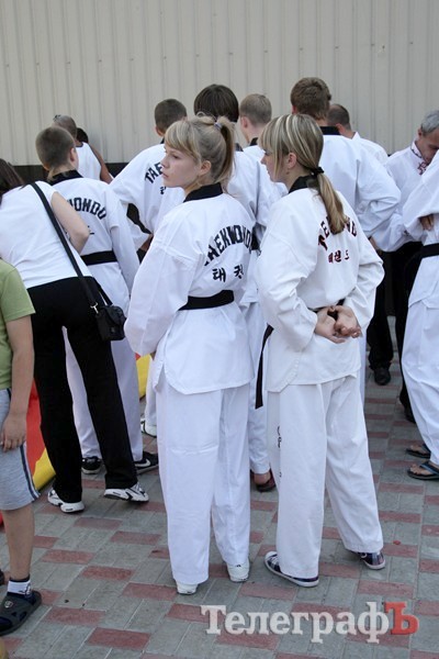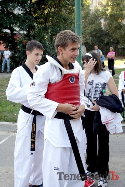 Перед теми, кто пришел на праздник, выступили тхеквандисты, дзюдоисты. Ученики школ посоревнованись в беге, а дети смогли попрыгать на специально привезенных для праздника батутах.