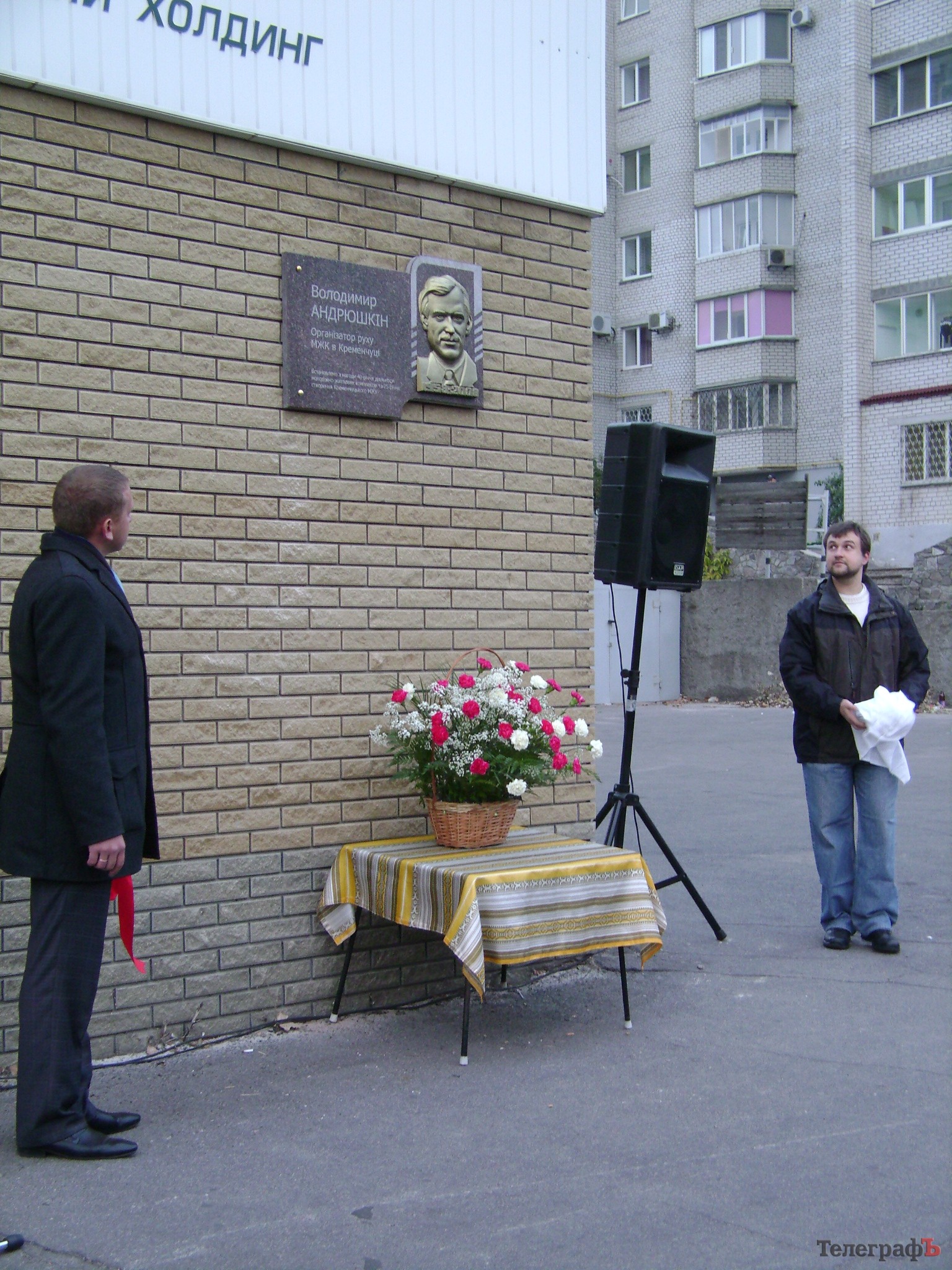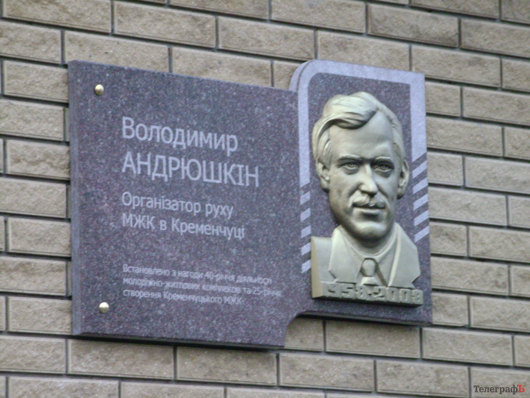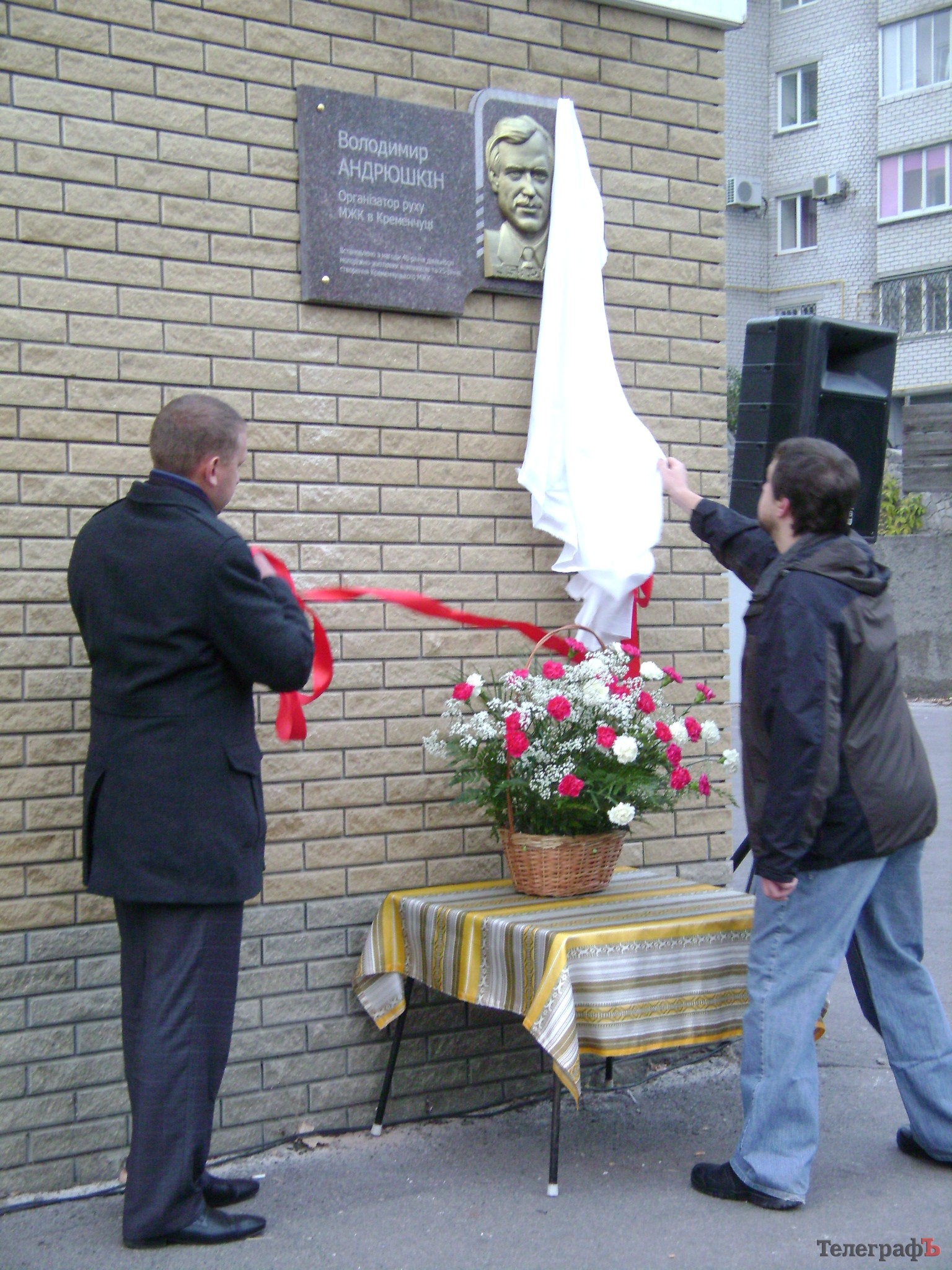 28 октября в Кременчуге открыли мемориальную доску Владимиру Александровичу Андрюшкину – первому секретарю городского комсомола. Теперь каждый, кто пройдёт мимо дома № 72-А на улице Щорса сможет узнать, благодаря кому это жильё строилось. Открытие приурочили ко дню рождения Комсомола (29 октября).