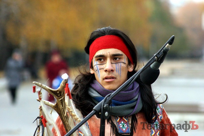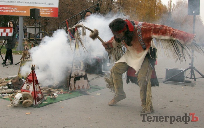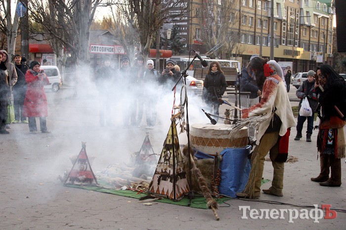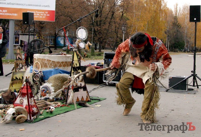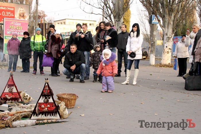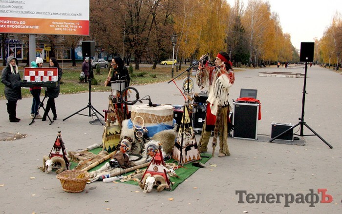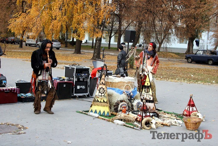 8 ноября в центре Кременчуга прохожих развлекали индейцы. Артисты пели, танцевали и предлагали купить свои диски.