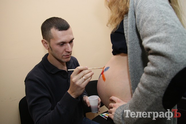 Но главное – любить своего ребенка и друг друга. Это главная мысль, которая звучала на практическом занятии. Душевной гармонии помогает арт-терапия, уверены в общественной организации. В этот раз будущим папам предложили создать картины на животах будущих мам. Кто не решился на креатив, выбрал лист бумаги…