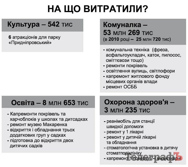 Отже, «земельні» гроші Кременчук з чистою совістю спрямував на себе. Левова частка кошику пішла на житлово-комунальне господарство.