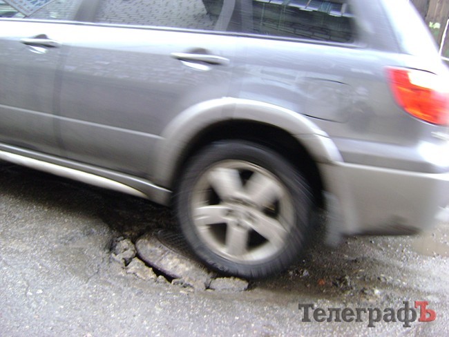 Кстати, недавно, буквально метрах в 20 от этих двух ловушек на дороге автомобиль въехал в люк и «потерял» запчасти. После ДТП тот люк привели в порядок, но дальше по улице коммунальники, как видно, не ездили...