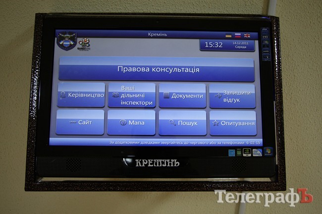 - В айбоксе несколько блоков, – объясняет старший инспектор отдела общественной безопасности Олег Георгица, который занимался созданием айбокса. – Первый – блок правовой консультации. Тут можно узнать все - от информации, какие документы нужны для оформления загранпаспорта, до получения оружия. Отдельно есть блок, который называется «Экстренные случаи». Тут говорится о том, как вести себя водителю, если его остановил инспектор ГАИ, а также прохожим, которых остановил патруль ППС. Есть блок «Полезные советы». Мы в данном разделе предоставляем информацию о том, имеет ли право охрана в магазинах досматривать граждан, несет ли она ответственность за сумки, которые кременчужане оставляют в супермаркетах в камерах хранения. Также там можно узнать время и место приема граждан руководством милиции Украины, области, города и районов.
