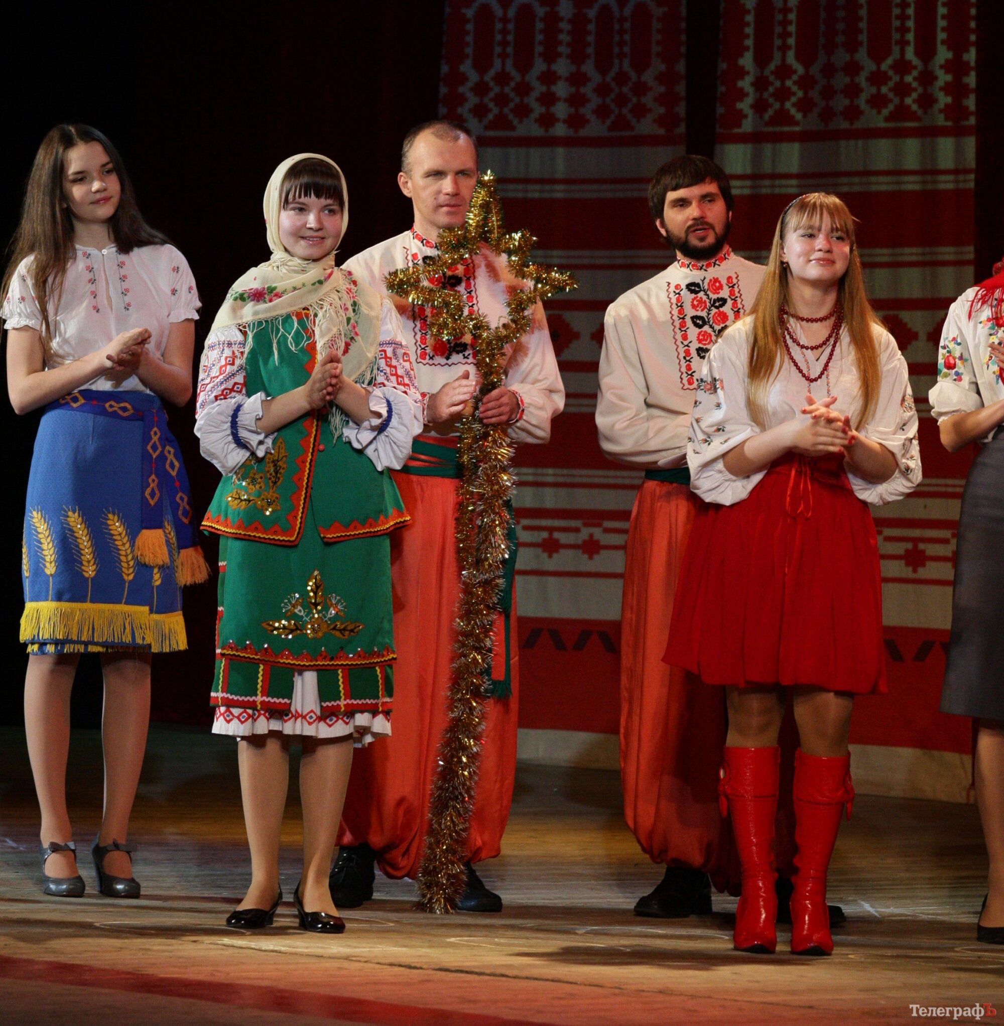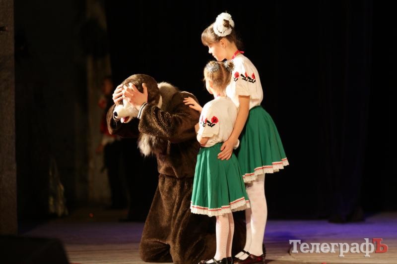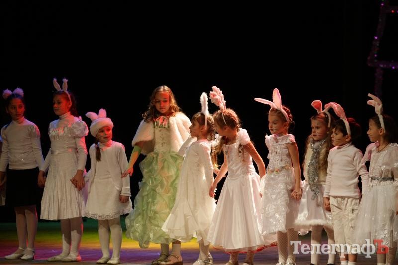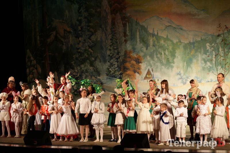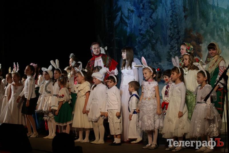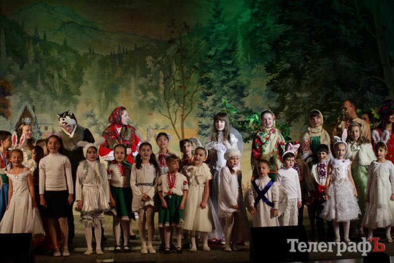 Сказку зал смотрел с увлечением. В ней были мама со своими семерыми козлятами, которые шли через лес в храм, и злой герой — серый волк, который украл двух козлят, и лесные звери, и Ангел Господний, который помог найти козлят и злого волка сделать добрым, и новогодняя елка, вокруг который дети водили хоровод и выступали колядующие.