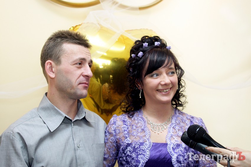 Эта пара была самой старшей из всех, поженившихся в этот день. У каждого из молодоженов это уже не первый брак – Алена выходит замуж второй раз, а Юрий – женится в третий. Но супружеская чета уверена, что их брак будет долгим: