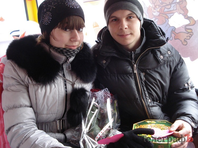 На этот раз необычный автобус колесил по маршрутам №15 и №30. Пассажирами необычного транспорта были влюбленные пары. За проезд они "платили" искренним поцелуем. В этом году 95 пар проехались в "маршрутке любви" и стали участниками розыгрыша призов. Ангел и Купидон, сопровождающие рейс, дарили влюбленным пассажирам валентинки и подарки от спонсоров.
