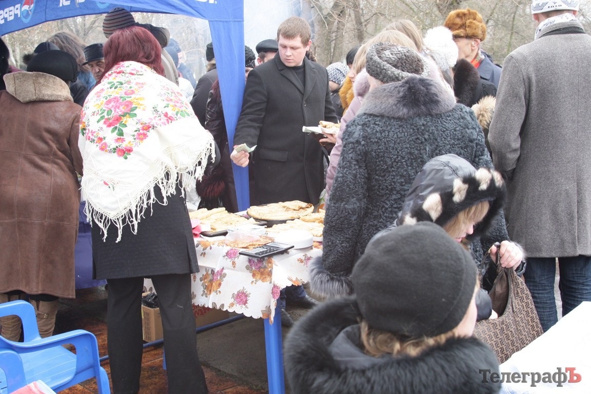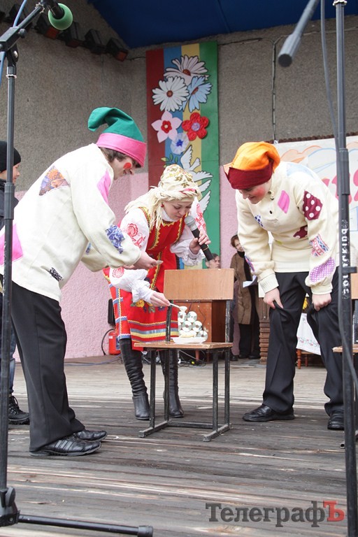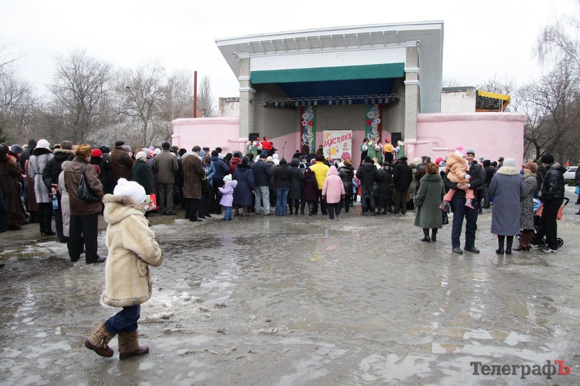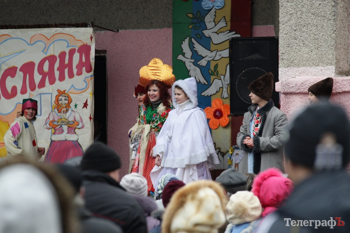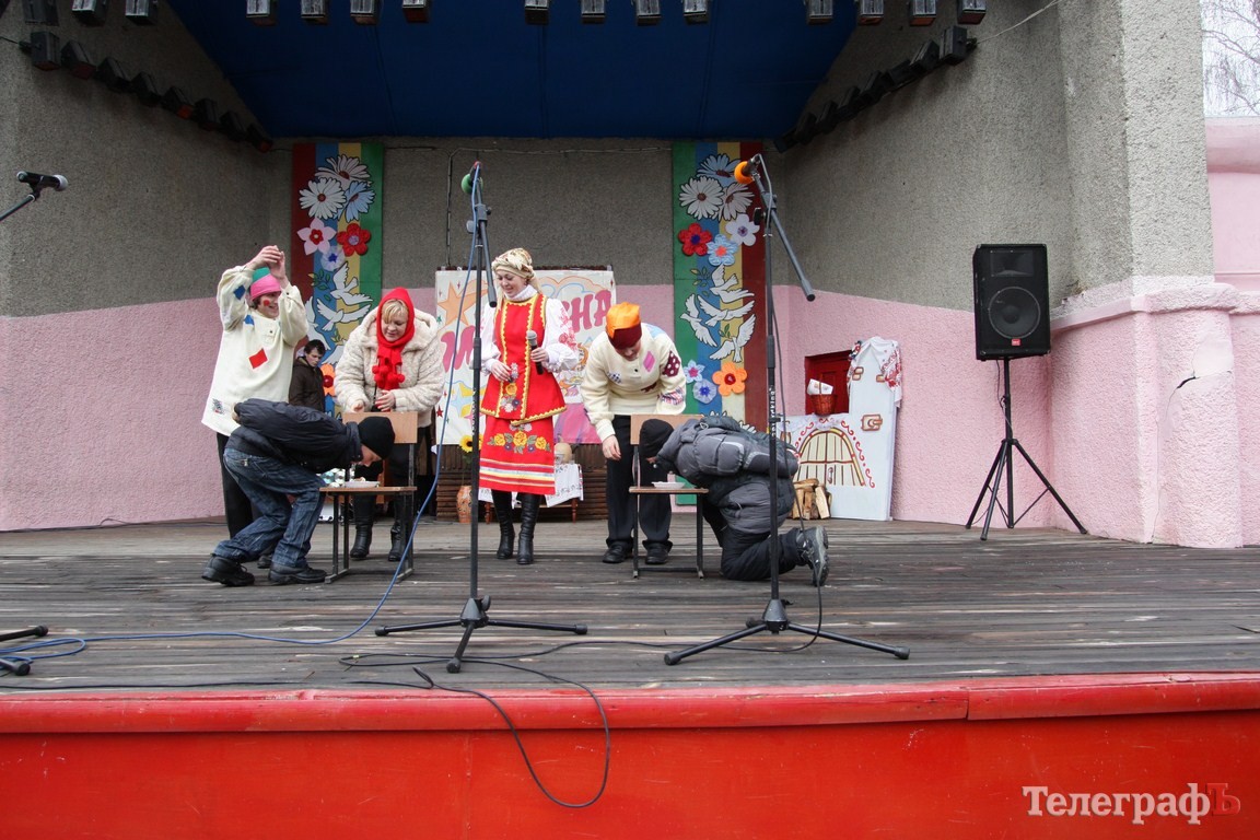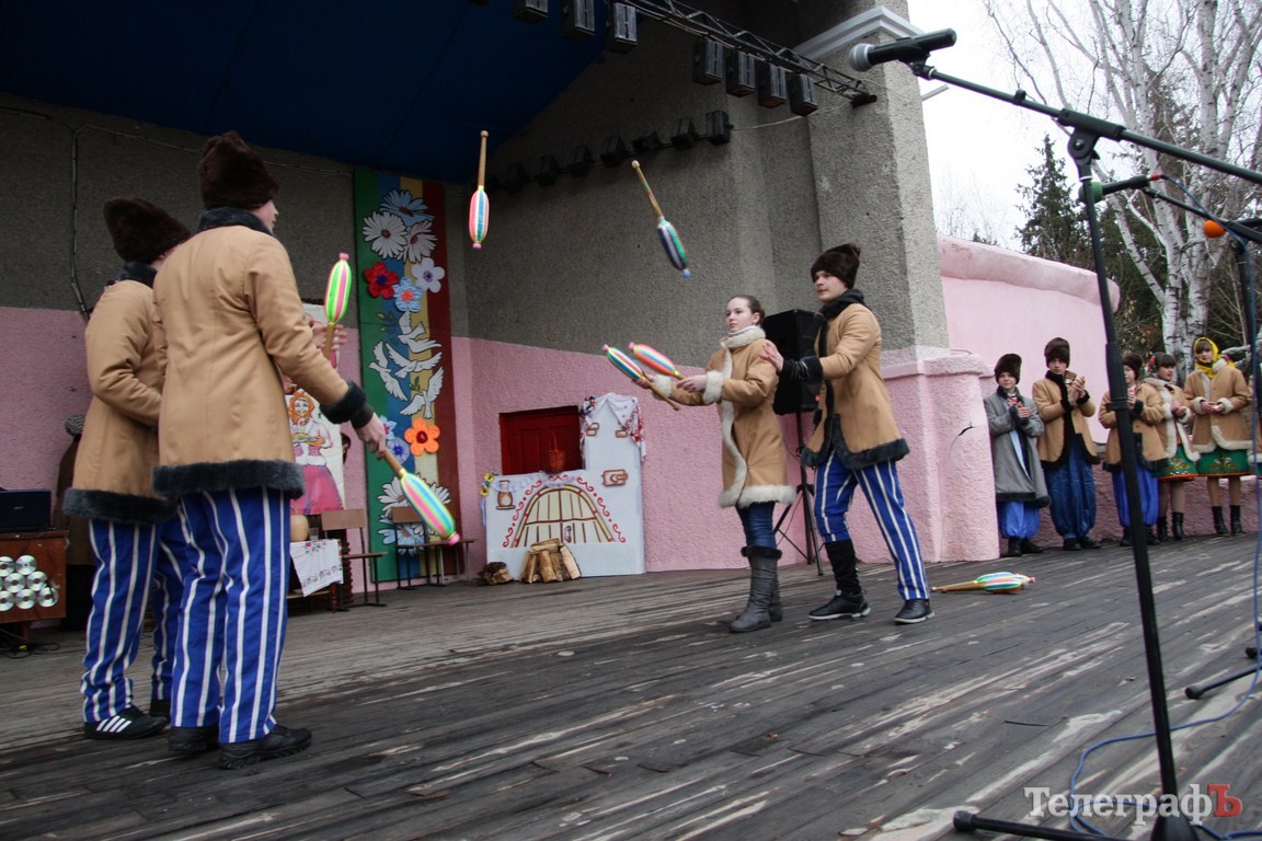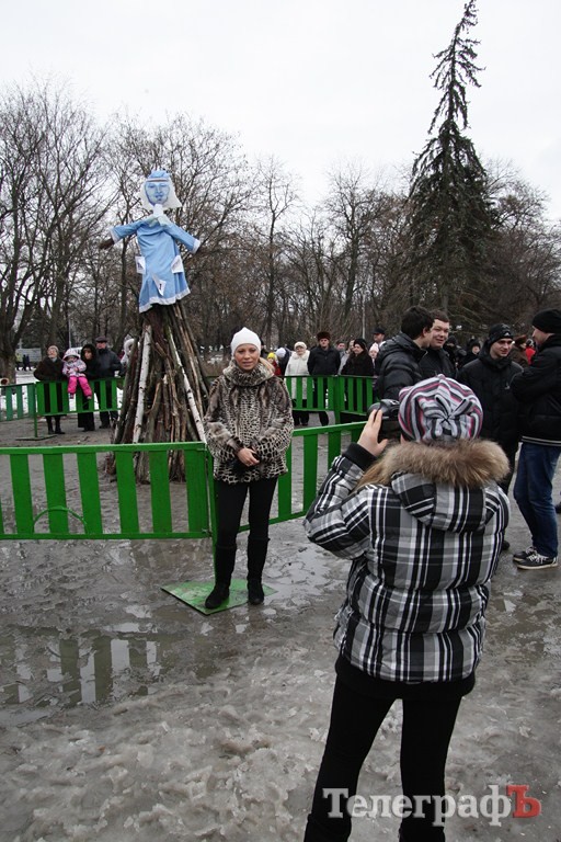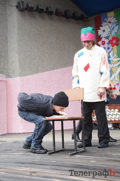 Для желающих погреться был организован чай и блины - сладкие и соленые блинчики с начинкой продавали по 7 грн, возле места продажи народу было не намного меньше, чем возле сцены. На самой сцене прошло неколько конкурсов, например, на скорость поедания вареников. Традиционно встречали Маслену и весну, провожали зиму и закончили мероприятие сжиганием чучела.