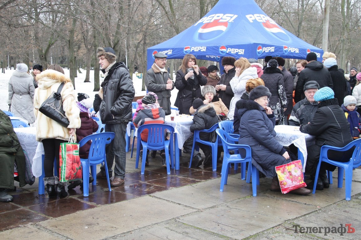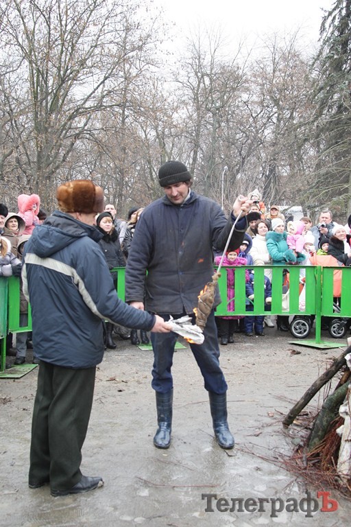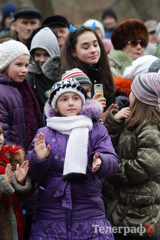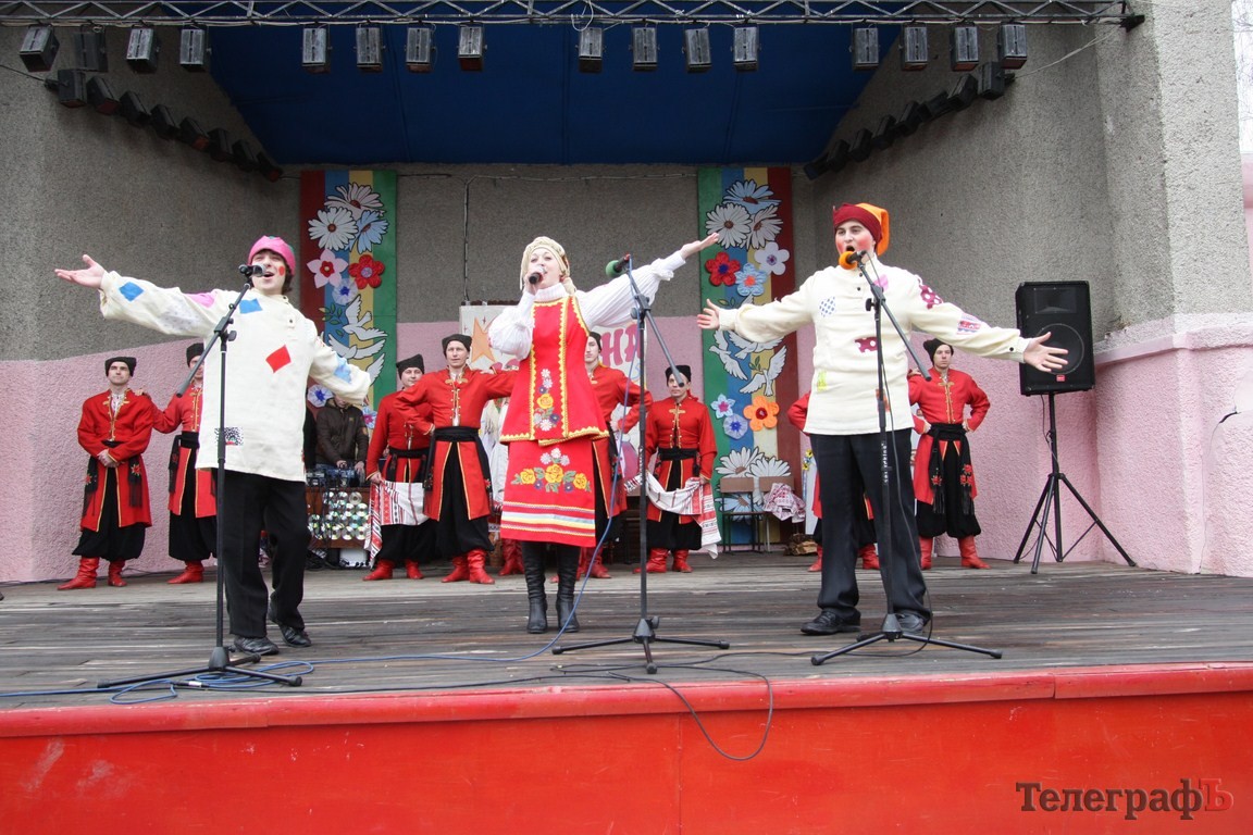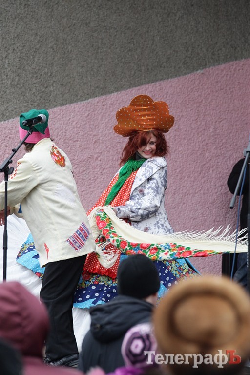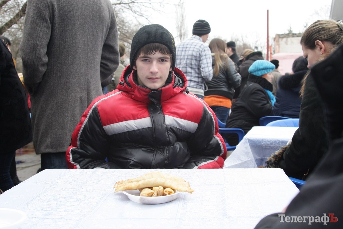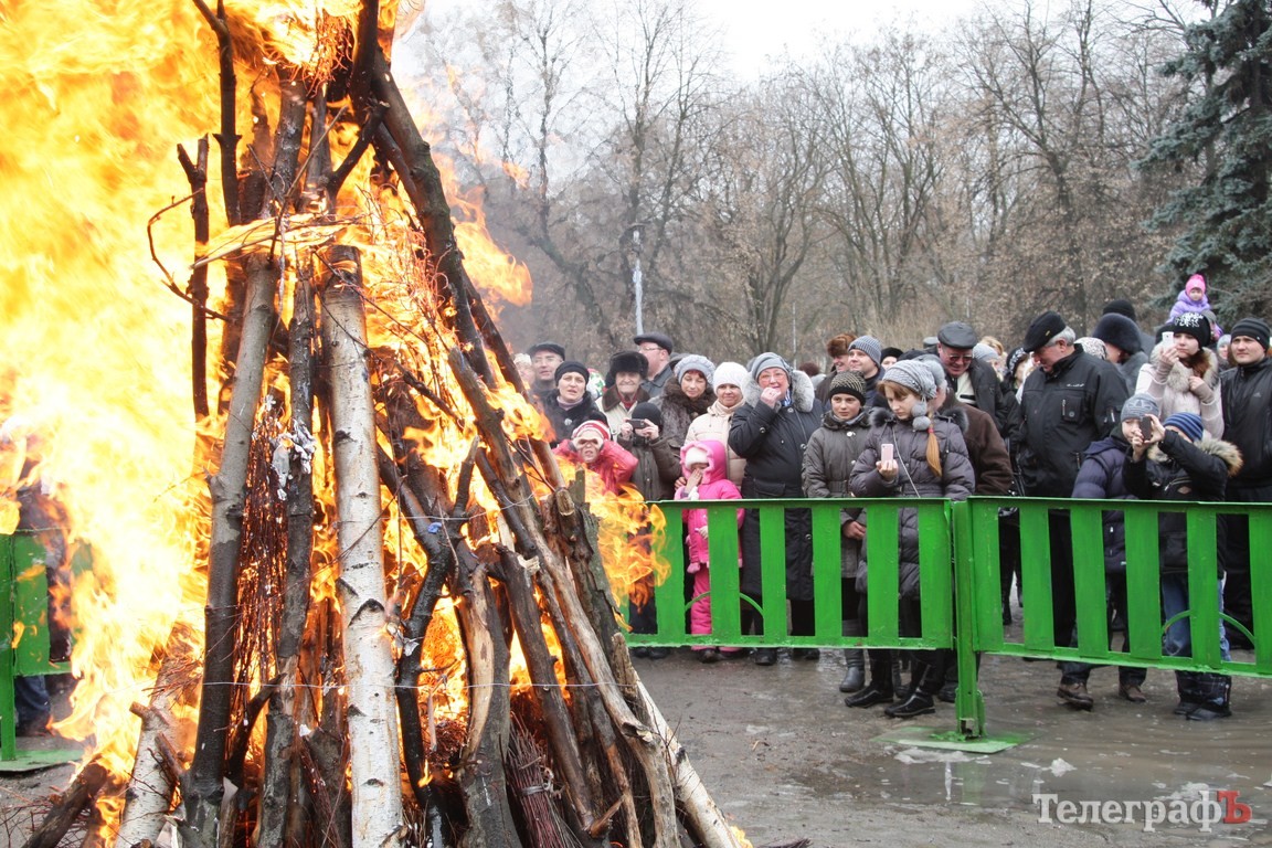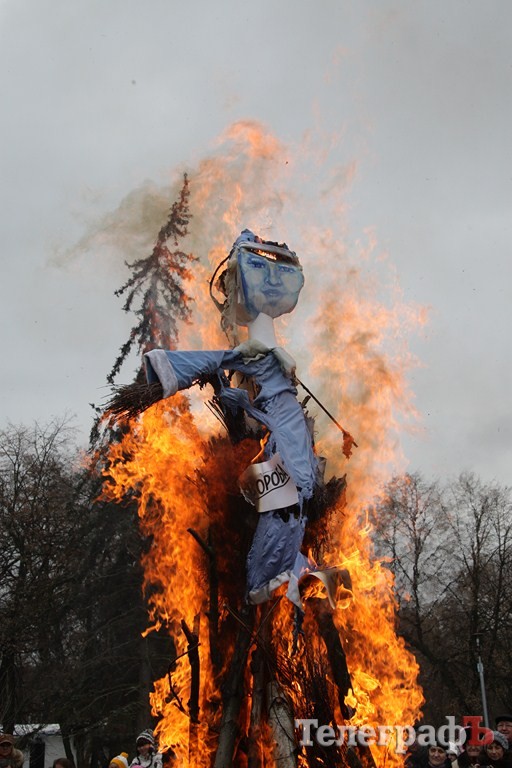Для желающих погреться был организован чай и блины - сладкие и соленые блинчики с начинкой продавали по 7 грн, возле места продажи народу было не намного меньше, чем возле сцены. На самой сцене прошло неколько конкурсов, например, на скорость поедания вареников. Традиционно встречали Маслену и весну, провожали зиму и закончили мероприятие сжиганием чучела.