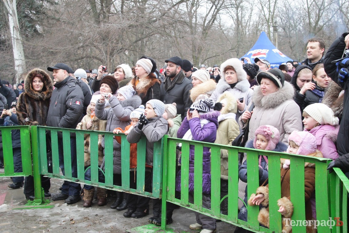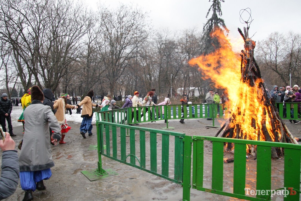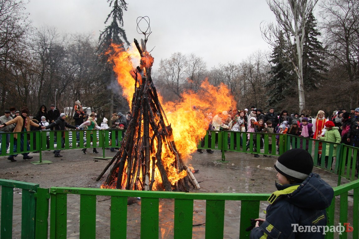 В Кременчуге 26 февраля отпраздновали Масленицу. Гуляние проходило традиционно на летней площадке Приднепровского парка. Правда, большого количества гостей на праздник не собралось из-за погоды. Пройти по парку к месту торжества было сложно - дорожки не были расчищены, приходилось "плыть" по тающему снегу.