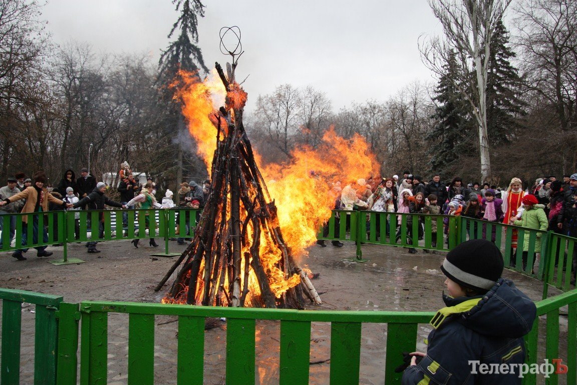 В Кременчуге 26 февраля отпраздновали Масленицу. Гуляние проходило традиционно на летней площадке Приднепровского парка. Правда, большого количества гостей на праздник не собралось из-за погоды. Пройти по парку к месту торжества было сложно – дорожки не были расчищены, приходилось «плыть» по тающему снегу.