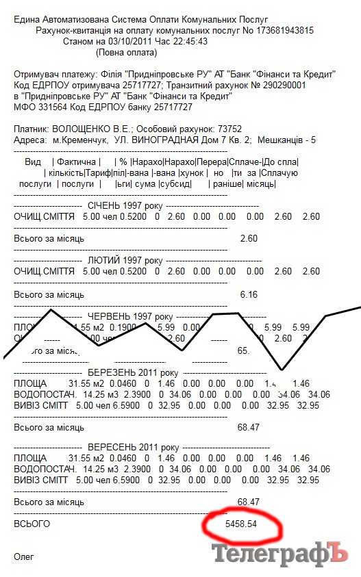 А це рахунок на 5 458 грн за кілька років, який виставили Вікторії та її сестрам за послуги, якими вони не користувалися. Сміттєвих контейнерів у колонії теж немає – як нам повідомили у КАТП, сміття вивозиться, як у приватному секторі. От тільки там укладають договори з мешканцями, а у нашому випадку – все в абонплаті, хоча сміття підприємство й не забирало. Щоправда, коли ми зателефонували у КАТП – нам пообіцяли розібратися з рахунком.