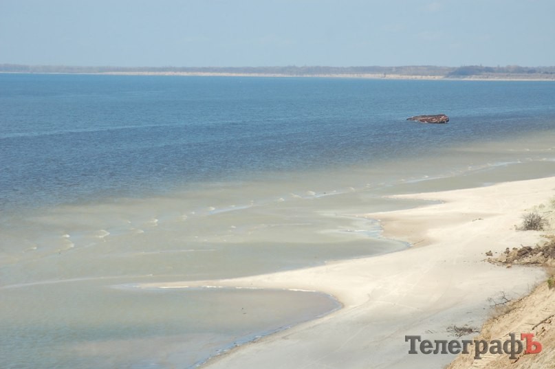 Баржа, которая билась о дамбу Кременчугского водохранилища теперь сидит на мели у горы Пивихи. Её видно всем, кто спустится к берегу со стороны лагеря «Чайка».