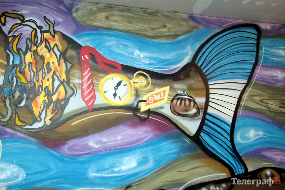 Мы смотрели-смотрели на все это «уличное безобразие», так органично вписавшееся в голые музейные стены. И стало так грустно: неужели все это исчезнет с развитием реставрационных работ? Однако инициаторы открытия необычной экспозиции надеются, что после окончательного ремонта музея расписанные стены останутся.