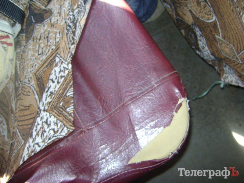 Это фото сделано 20 мая в старой «Руте», которая курсировала по маршруту №16. Сидения, похоже, не родные и вообще мало похожи на сидения: на этом ободранном безобразии дамам в колготах вообще лучше не ездить. Тем более, что снизу еще и торчат железки. Прощайте, колготы