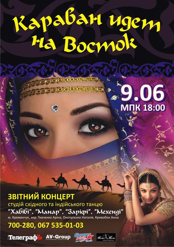 «Телеграф» разыгрывает 20 билетов на отчётный концерт студий восточного и индийского танца «Караван идёт на восток», который состоится в ГДК 9 июня. Десять участников розыгрыша получат по 2 билета на спектакль. Для того, чтобы принять участие в розыгрыше, нужно ответить на вопросы и ЗАПОЛНИТЬ АНКЕТУ.