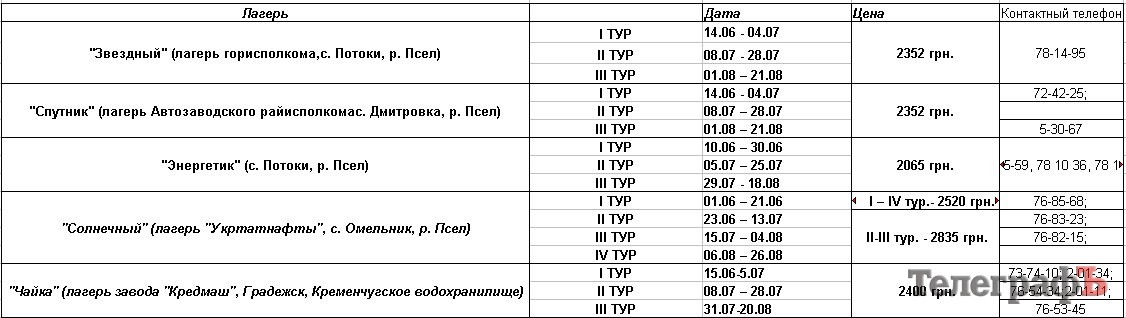 Стоимость детского отдыха в этом году в некоторых лагерях возросла гривен на 200, а в некоторых не поменялась. Часть стоимости путевки традиционно компенсирует фонд социального страхования: если вы застрахованы, он возместит определенную сумму, которую вы потратили на приобретение путевки.