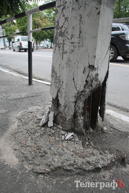 В центре Кременчуга, на улице Пролетарской (по правой стороне со стороны моста) рушится бетонный столб. В редакцию обратился наш читатель Алексей с вопросом, почему никто не видит этой проблемы.