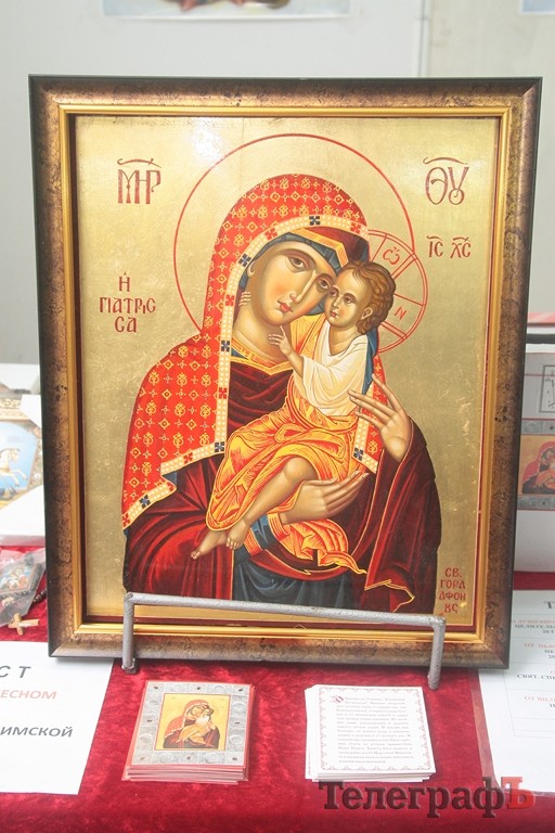 У входа выставки выставлена чудотворная икона Богородицы "Иверская" с частицей покрова Божьей Матери с Афона. Ее сопровождает монах Лука, который рассказал журналистам, что икона исцеляет от болезней.