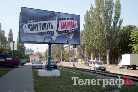 В Кременчуге появились билборды с надписью «Чому ріжуть Бабаєва». Что режут и кто — непонятно. На билборде также нет никаких данных о том, кто борд заказал и изготовил.