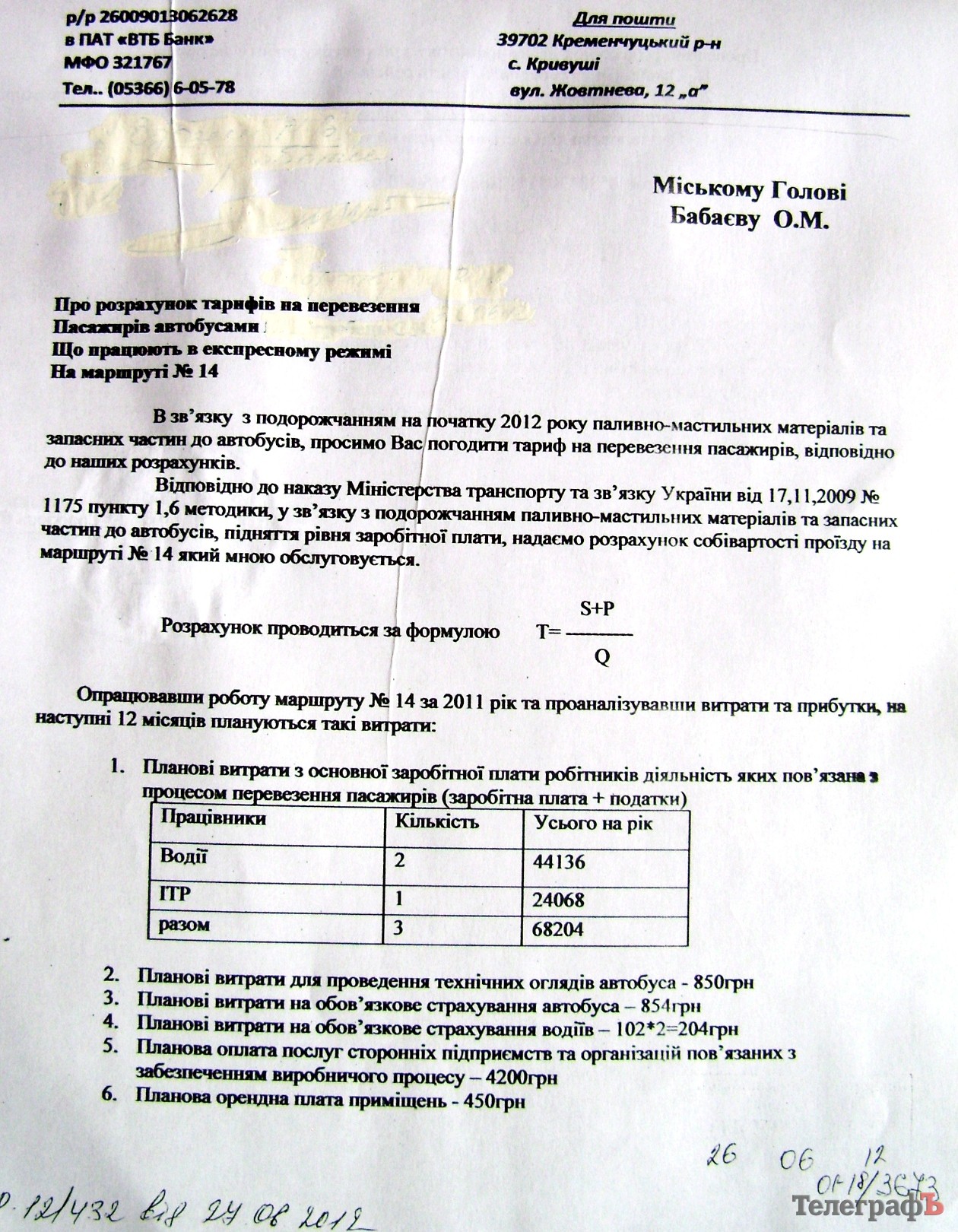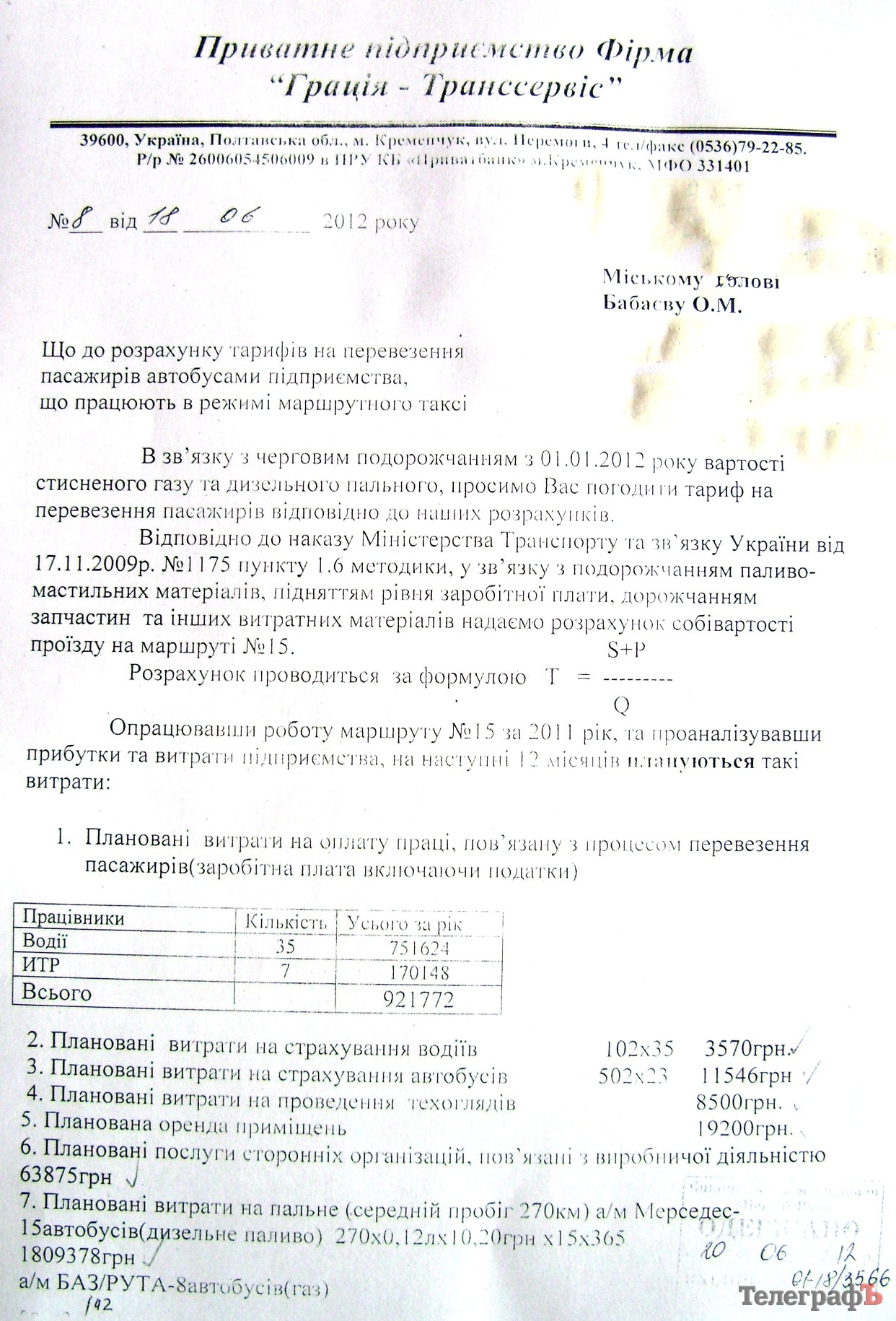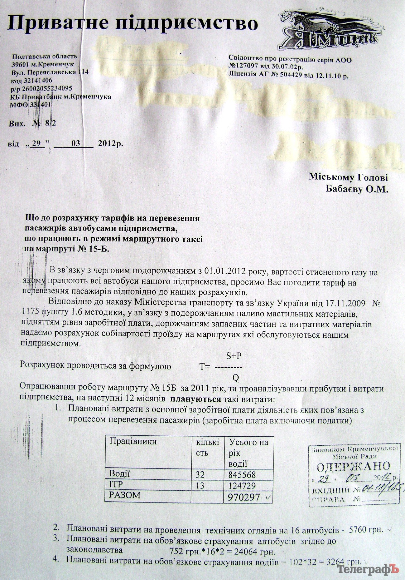 Документи для ознайомлення «Телеграфу» надали у мерії. Прізвища директорів підприємств у документах були заретушовані згідно із Законом «Про захист персональних даних».