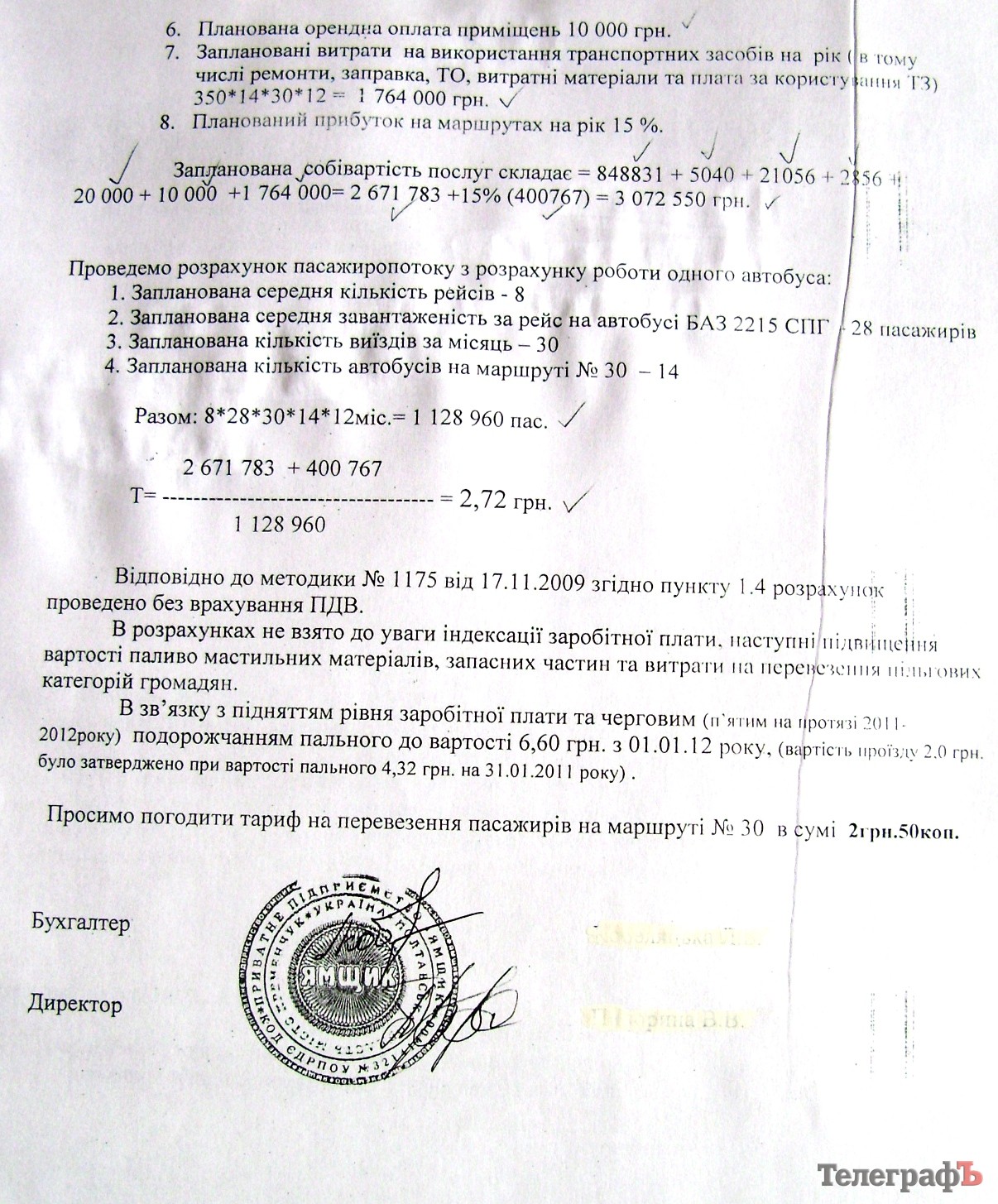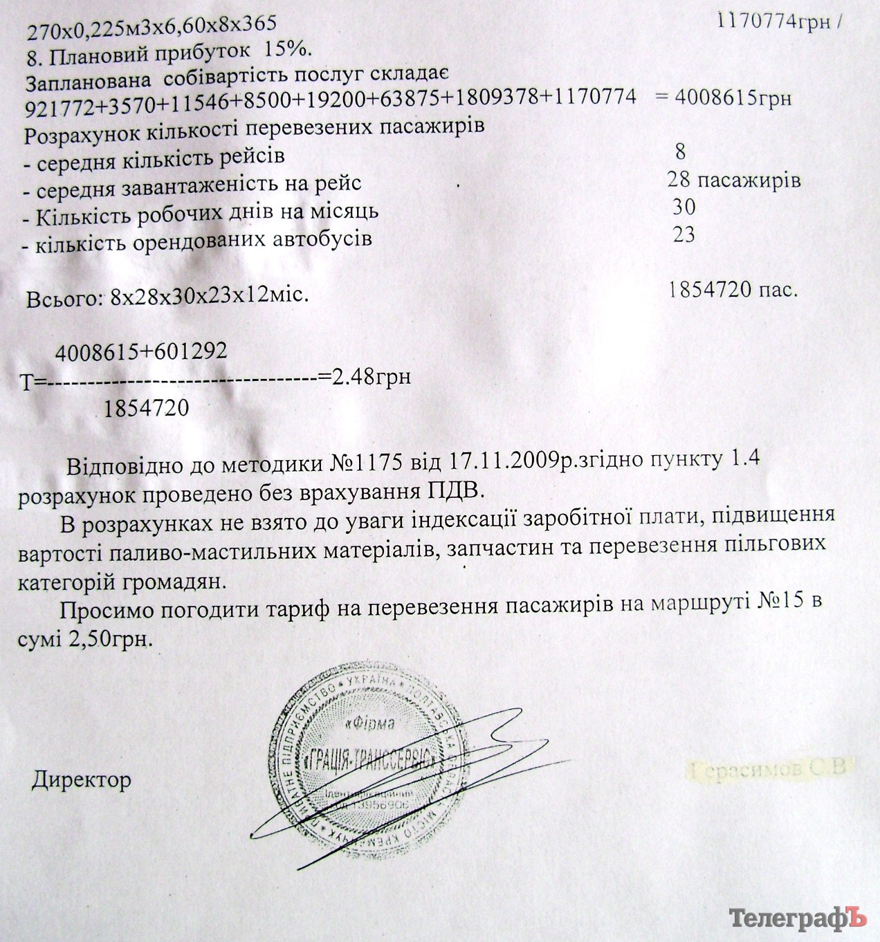 «Бо довго просили», – це перша відповідь, котра одразу спадає на думку. Адже в розрахунках підприємств-перевізників ніхто з чиновників особливо і не копався. Головна вимога до них була одна: зробіть їх так, як вимагає урядова методика. Усе! Чому на маршруті 3Б всі автобуси раптом перейшли на дизельне паливо – навіть «ГАЗельки», а на 17-му, навпаки, – спринтери їздять на газу? І ці папери приймають? Але найголовніше те, що перевізники та чиновники навідсіч відмовляються бачити в салонах своїх автівок стоячих пасажирів. Ось везе собі 11-та маршрутка 18 пасажирів в один бік – і крапка. І нікого не хвилює те, що вона зранку та ввечері забивається, як консерва, мешканцями Першого Занасипу, котрі їдуть у центр, а потім удруге – мешканцями Молодіжного. Найпопулярніші маршрути (2, 3Б, 9, 11, 15, 17, 20) – усі нібито їздять без стоячих і перевозять 14-18 пасажирів у один бік. Якщо ж ввести до розрахунків стоячих «людей-невидимок» (бодай 10 пасажирів на рейс), то тариф на перевезення не дотягне й до 2 гривень. А нас просять викласти вже 2,5 грн. Звісно, на захист перевізників говорить те, що з початку 2011 року зросли ціни на пальне, матеріали, зросла зарплатня, але надані розрахунки не витримують критики. Шалені затрати окуплять «стояки».