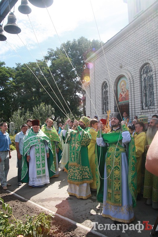 Службу возглавил епископ Кременчугский и Лубенский Николай. Сослужили ему священнослужители из кременчугских церквей. Богослужение проходило под открытым небом на площади перед церковью, где собралось несколько сотен прихожан. Среди них депутат горсовета Александр Яцына, первый зампрокурора города Людмила Середа, руководители бизнесструктур и много других известных в городе людей.