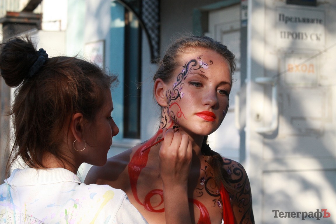 - Уже давно я придумала и вынашивала идею собрать вместе моделей, художников и фотографов, что бы со всех возможных сторон максимально запечатлеть творческий процесс создания эксклюзивных арт-образов, - говорит студентка КНУ им. Остроградского Анастасия Селора. – Сегодня получилось все так, как задумывала, может быть, даже лучше. Судите сами. Отмечу, что моделей разрисовывали в течение 3-х – 4-х часов. Вышло около 10 образов: от Аватара до Королевы (см. фото).