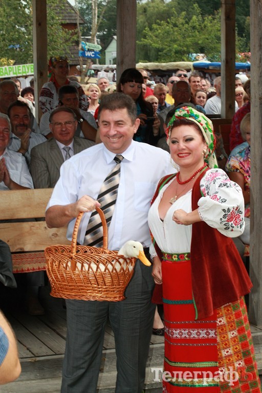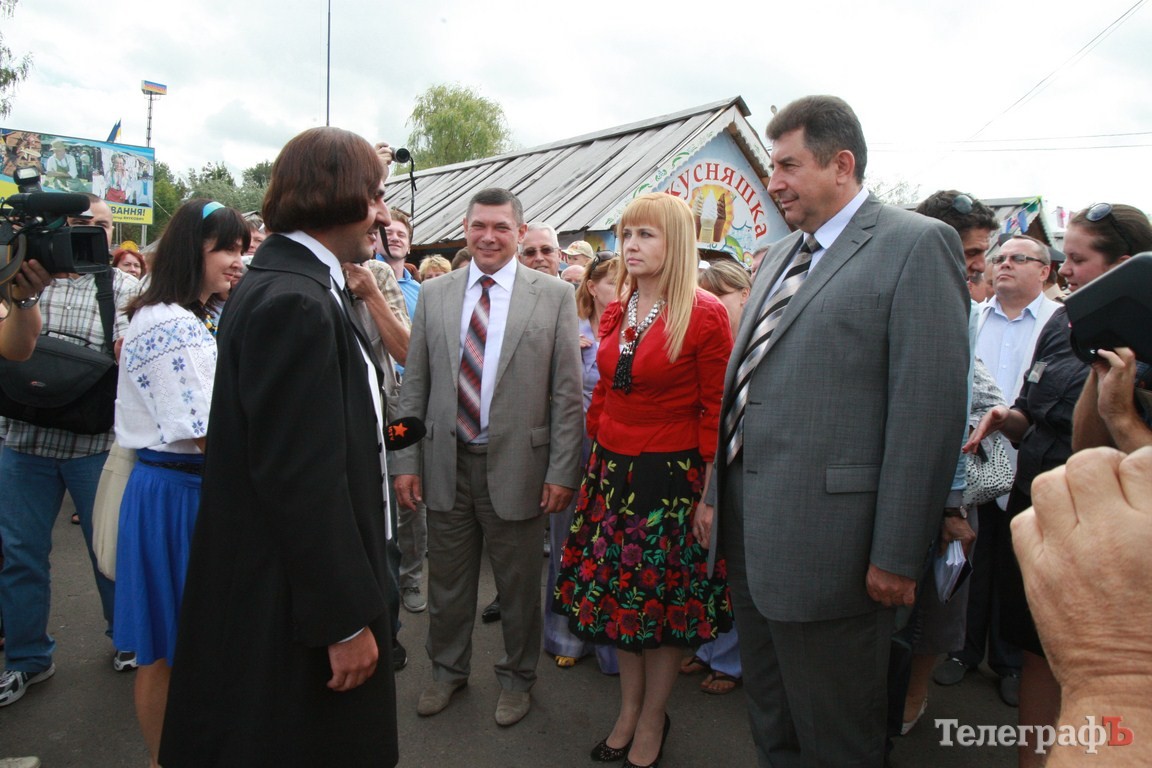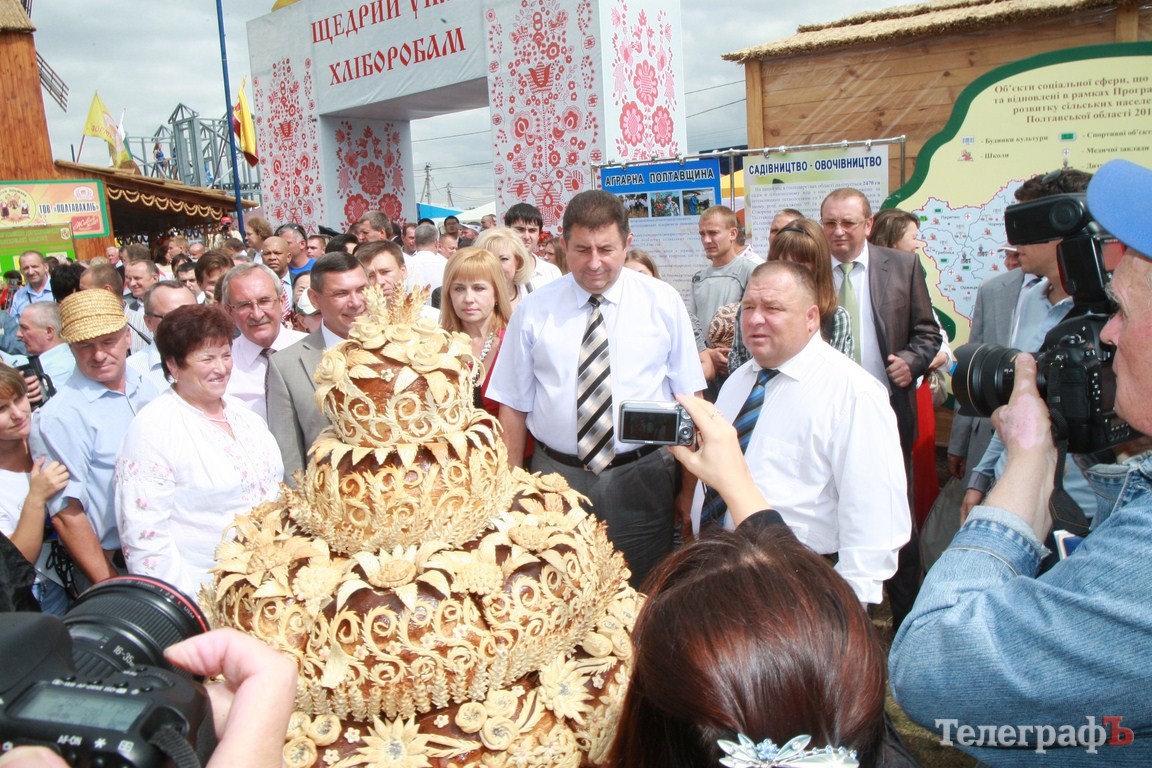 Ярмарку открыл губернатор Удовиченко, которому подарили гусака. Людей удивлял гигантский 250-килограммовый каравай, огромная жилетка и городок из хлеба.