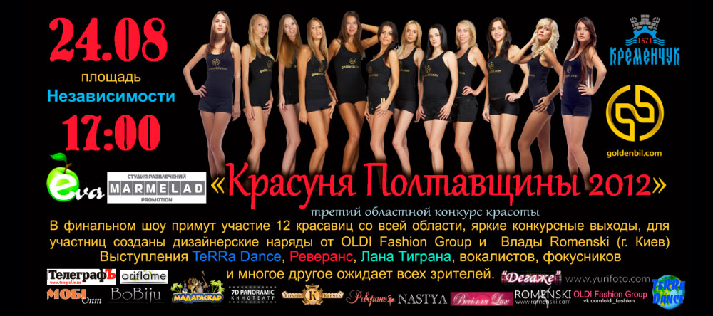 Финал третьего областного конкурса красоты "Красуня Полтавщины 2012" состоится 24.08 на площади Независимости начало в 17:00.