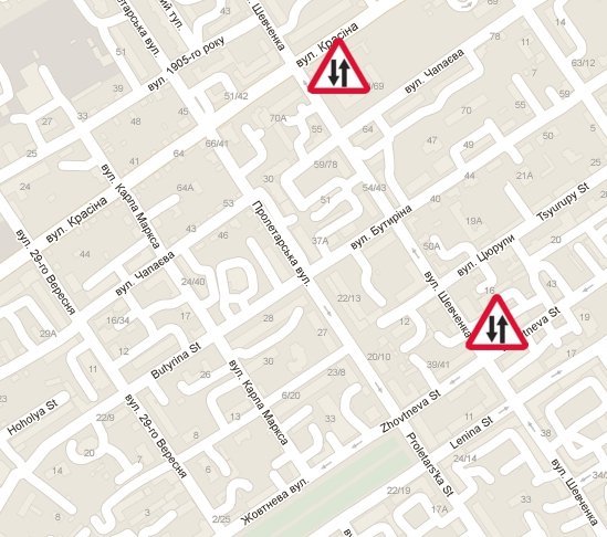 Напомним, что движение по ул. Шевченко от улицы Красина в сторону ул. Ткаченко двустороннее.