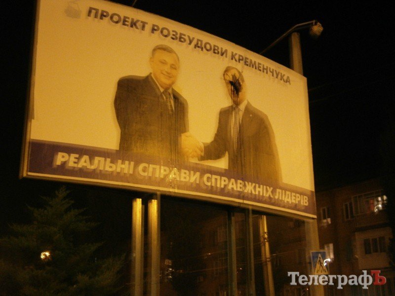В пятницу вечером неизвестные или неизвестный забросал бутылками с краской избирательный билборд, который расположен на перекрестке улиц 60 лет Октября и Героев Бреста ( в районе магазина «Фарро»).